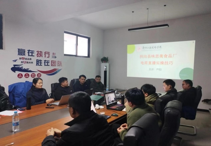 为了助力当地企业更好地利用电商平台,三位老师最后前往扶沟县味思美食品厂开展了针对该厂调味品的电商直播实操技巧培训。参加培训的公司领导和员工纷纷表示,这次培训内容实用、针对性强,为他们今后开展农产品电商直播提供了宝贵的经验和指导,他们将把所学知识运用到实际工作中,努力提升产品在电商平台的销量。味思美食品厂董事长曹庆喜对此表示,希望与学校建立长期帮扶合作关系,共同提高电商直播质量和水平。在培训结束后,在工作队队长于书伟的主持下,双方就农产品跨境电商销售进行了洽谈,达成了初步合作意向。