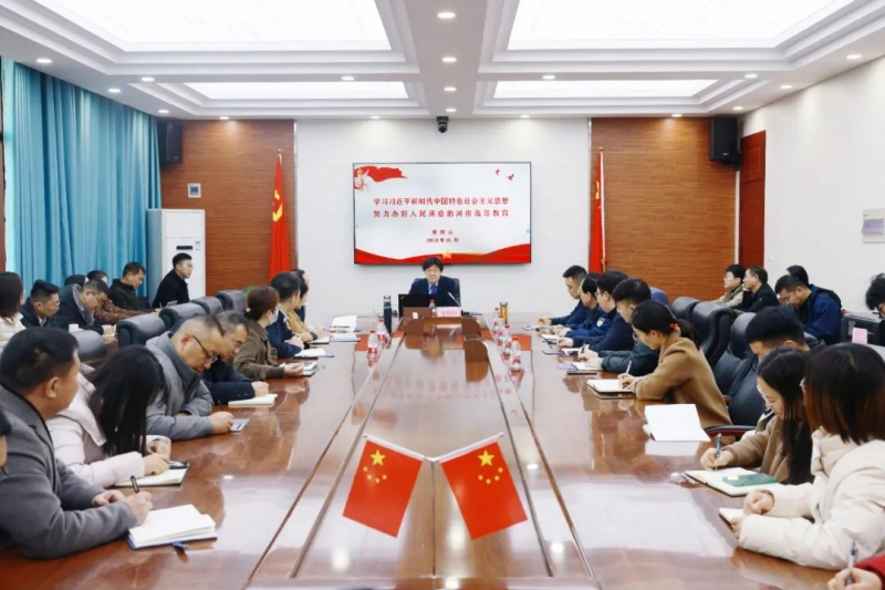 报告结束后,理事长赵帅代表学校感谢郑邦山主任近三年对郑州城市职业学院的关心与关爱。他表示,决不辜负上级领导的信任和殷切期望,带领学校领导班子成员,进一步改革创新,开拓进取,用心做好教育事业,切实为河南培养高素质、高技能实用型人才,为建设教育强国、教育强省做出更大贡献,更加努力把郑州城市职业学院办成一所让学生喜爱、家长放心、社会满意的学校。