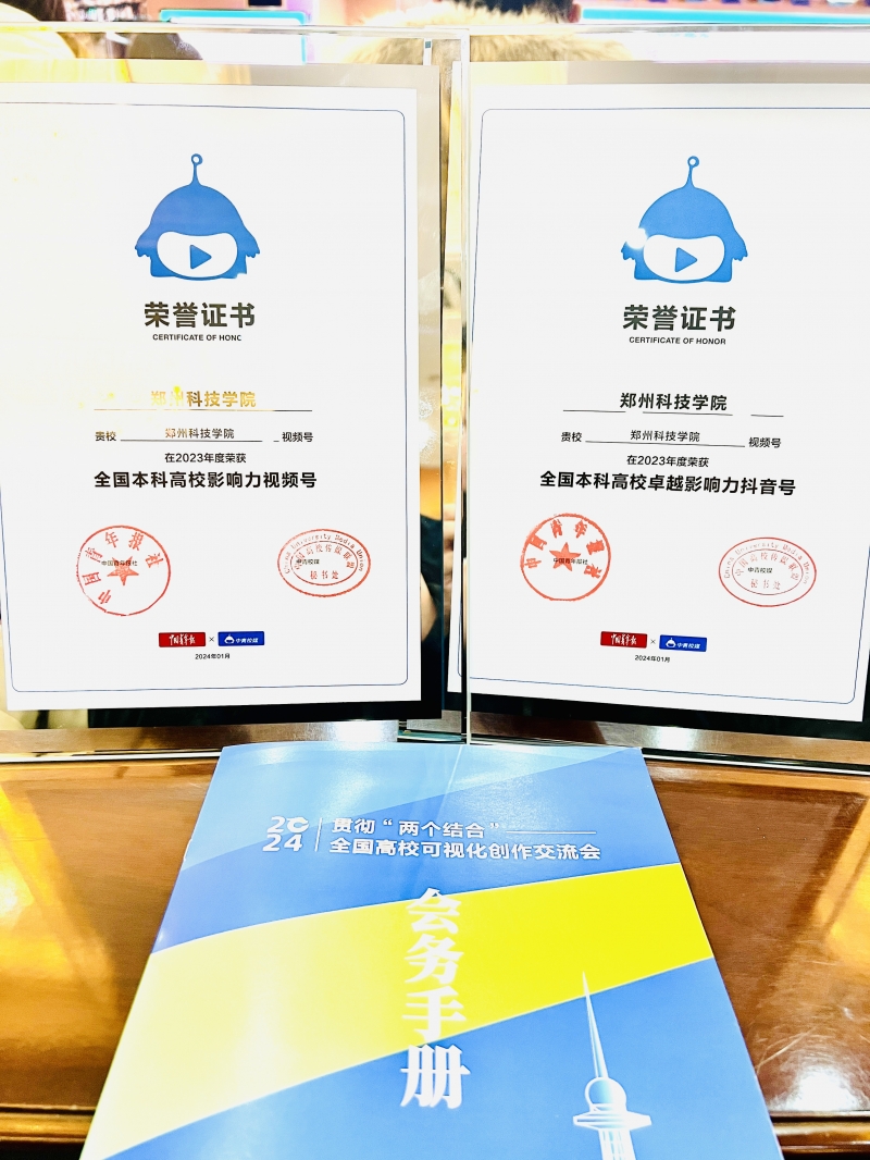 在发布的2023年度全国卓越影响力抖音号和影响力视频号指数排行中,郑州科技学院在众多高校中脱颖而出,官方抖音号与北京大学、中国人民警察大学等高校位列全国前十,官方视频号位列全国前五十。其作品《当大学校园出现跳格子》在2023年度全国本科院校抖音号热门视频TOP100中位列全国第三。