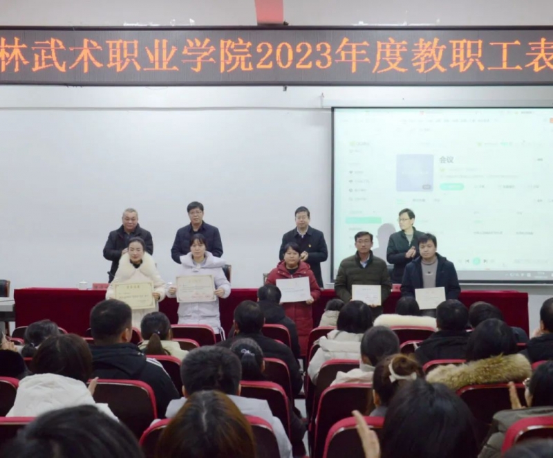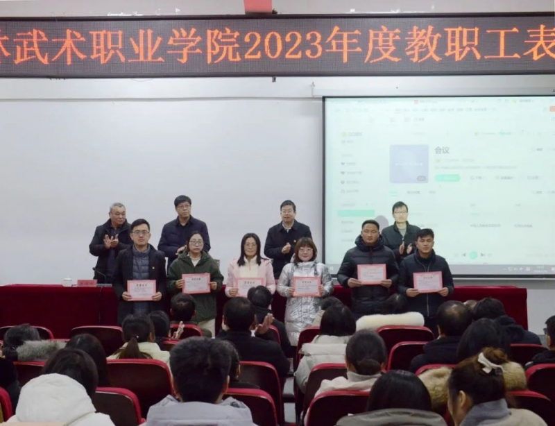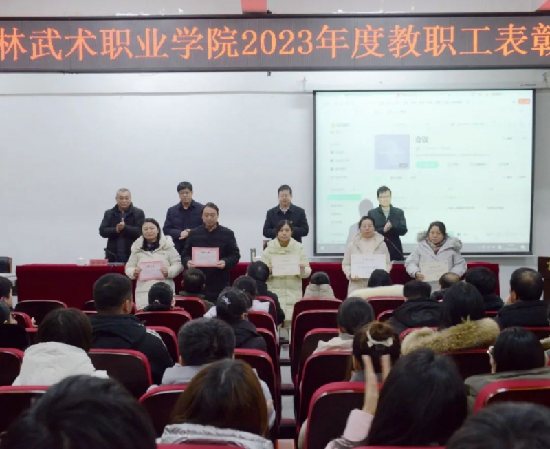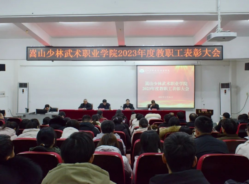 1月26日下午,嵩山少林武术职业学院召开2023年度教师表彰大会。党委书记田逸、党委副书记王占强、纪委书记牛超群、副院长滕俊峰出席会议,全体教职工参加会议。会议由王占强主持。