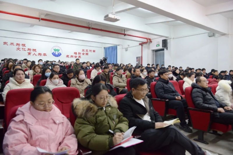 会上,田逸作2023年度工作总结,向受到表彰的集体和个人表示热烈的祝贺,向辛勤耕耘在教学、管理和服务岗位上的全体教职工表示衷心的感谢和崇高的敬意。他指出,2023年,学校在上级部门的指导和支持下,在学校师生上下一心共同努力下,取得了良好的成果。一、党建工作提升新高度,充分发挥了党委政治核心作用。二、招生工作开拓新局面,奠定了办学水平提升坚实基础。三、国际交流取得新进展,传承弘扬了中华优秀传统文化。四、国防教育实现新突破,深度服务了国家人才强军战略。五、标准建设开辟新路径,切实弥补了少林武术标准空白。六、校风建设跃上新台阶,提振增强了师生干事创业的精气神。七、人才培养做出新成绩,更加坚定了走职业教育道路自信心。
