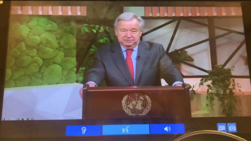 联合国秘书长古特雷斯通过视频方式对大会在联合国召开表示了欢迎并预祝大会圆满成功