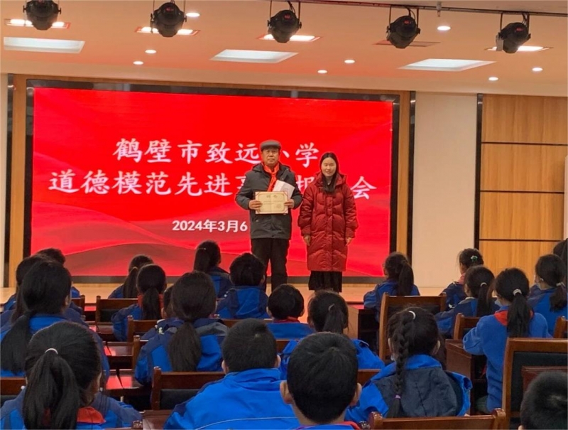 德育处徐主任为姚玉中颁发了鹤壁市致远小学道德模范宣讲师聘书。