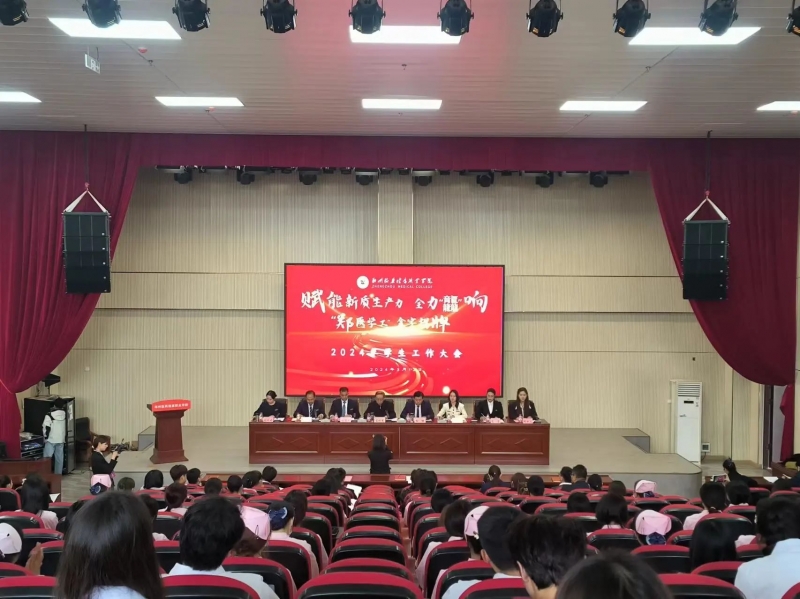 3月12日,郑州医药健康职业学院2024年学生工作大会在郑医学习大楼召开。会议以“赋能新质生产力,全力'龘'响'郑医学工'金字招牌”为主题,学校党委副书记、校长苗相甫,副校长张健出席会议,学工部全体人员和学生代表参加会议。会议由学生处科长杜普主持。