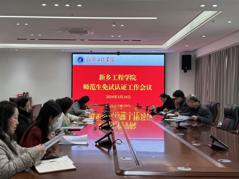 为贯彻落实教育部《教育类研究生和公费师范生免试认定中小学教师资格改革实施方案》及《教育部关于推进师范生免试认定中小学教师资格改革的通知》等相关文件精神,3月14日上午,新乡工程学院召开师范生免试认证工作会议,副校长赵一鹏出席并讲话,文法学院、外国语学院以及教务处相关负责成员参加会议。