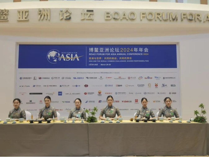 3月26日,2024博鳌亚洲论坛年会在海南博鳌召开。四天时间,平顶山职业技术学院文旅文创中心的18名师生以独特的茶事服务先后穿梭在博鳌亚洲论坛大酒店、博鳌亚洲论坛金海岸大酒店、博鳌亚洲论坛东屿岛大酒店等重要场所,近距离面对面与国际国内政商界人士提供服务。重要的是,他们通过茶事服务和调酒展示,把宋代点茶和中国的汝瓷茶艺艺术推向极致,在博鳌亚洲论坛年会上绽放异彩,赢得中外嘉宾的阵阵喝彩。