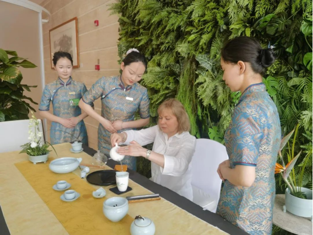 许婧认为,酒店的茶道服务是欠缺的,本来想和往年一样,有常规服务即可,但看到我们如此高端的表演,引起了特别的关注。除了国际政要和驻华大使,一些国内的重量级官员,如国资委、天津市、海南省旅文厅、海南省饭店协会、中远集团等领导亲临现场,他们观摩茶艺展示,了解汝瓷渊源,品味中原特色,坚定文化自信。