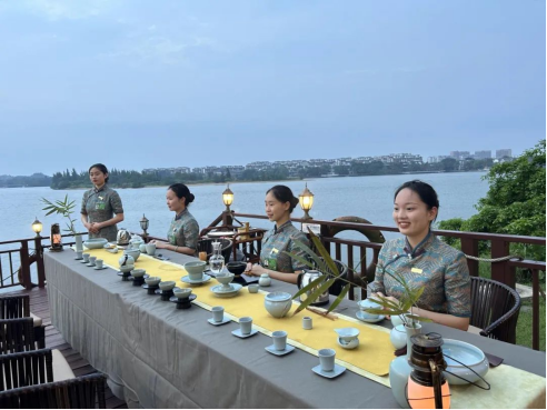 2022级普酒店管理班学生蒋国语说,最考验我们的就是出现临时接待安排、茶叙活动,我们要带着茶席茶具提前两小时赶场,然后开始布场、摆放茶具,完成接待任务。有时有签约仪式,最晚时到夜里12点才结束,我们还要认真细致地存放好自己的茶具,或直接带回宿舍。所有的付出,彰显我们工作的意义和价值,这些历练,开阔了视野,也提高了我的综合素质,值得一生的回味,真的很感谢老师,感谢学校。