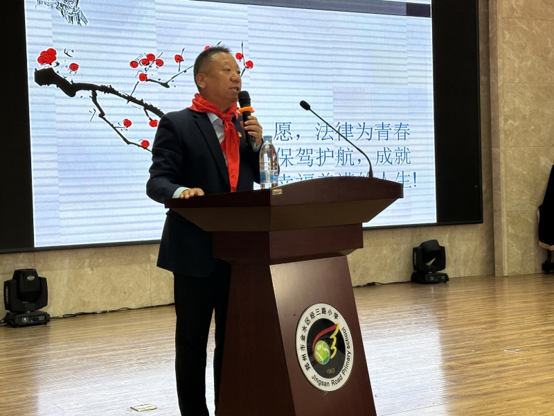 最后,金水区经三路小学党总支书记张仁杰发表讲话,他希望同学们敬畏法律、敬畏生命,做一个学法、懂法、守法的好公民。用法律擦亮眼睛,规范行动,用法律为青春护航!