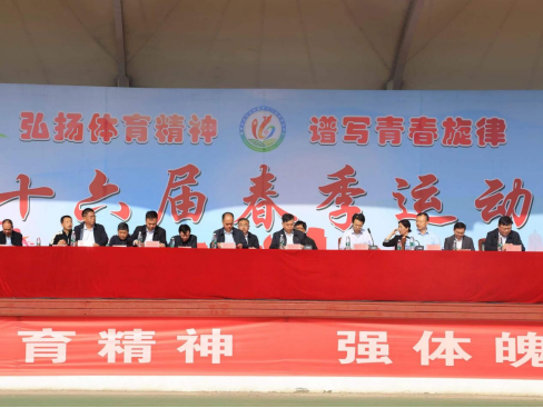 4月18日上午,鹤壁职业技术学院第十六届春季运动会开幕式在玉兰园田径场隆重举行。学校领导蔡太生、杨长春、王在尚、杨志波、唐保峰、韦博、杜永庆出席,各职能处室负责人、裁判员代表、二级学院师生代表参加。开幕式由副校长杨长春主持。