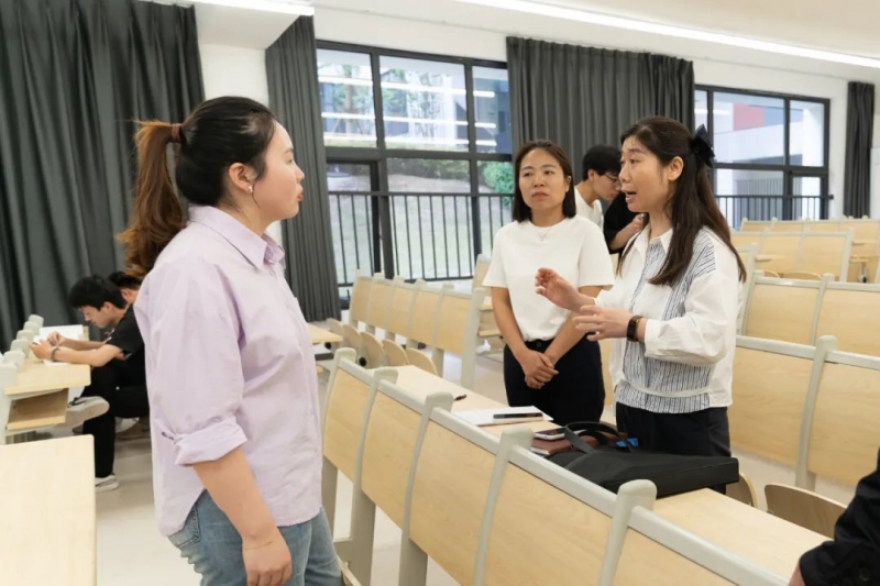 调研组专家采取随机抽取、随手推门的方式,深入思政课课堂,听取了张仃仃老师和朱钰老师讲授的《毛泽东思想和中国特色社会主义理论体系概论》课程。调研组认真记录了课堂情况,课后,专家和授课教师进行了交流反馈。调研组专家对两位教师的课堂教学予以肯定,认为两位教师课堂准备充分、讲课富有激情、教学设计新颖、重难点突出,能够结合班级学生的实际情况设身处地的进行讲解,真正做到了以学生为中心,同时也对灵活运用统一课件、增强教学逻辑性、提升授课内容学理性等方面提出了有针对性的建议。