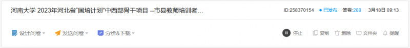 1.深入调研,了解文化视域与培训需求。为充分了解河北省“国培计划(2023)”-中西部骨干项目市县教师培训者工作坊研修(市县教师培训管理者省外研修项目)学员的文化视域与实际需求,开展精准施训,结合《关于做好 2023 年中小学幼儿园教师国家级培训计划组织实施工作的通知》(冀教师〔2023〕10 号)文件要求,河南大学教育学部对本项目学员进行了线上调研(如图1所示),旨在收集学员对于培训的需求和期望,确保培训计划能够紧密贴合他们的实际工作需要和文化背景。