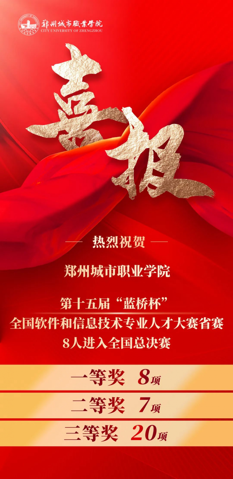 4月29日,备受瞩目的第十五届“蓝桥杯”全国软件和信息技术专业人才大赛省赛成绩公布,郑州城市职业学院在比赛中取得了令人瞩目的成绩,成功斩获了一等奖8项、二等奖7项、三等奖20项,在众多同类参赛院校中名列前茅。