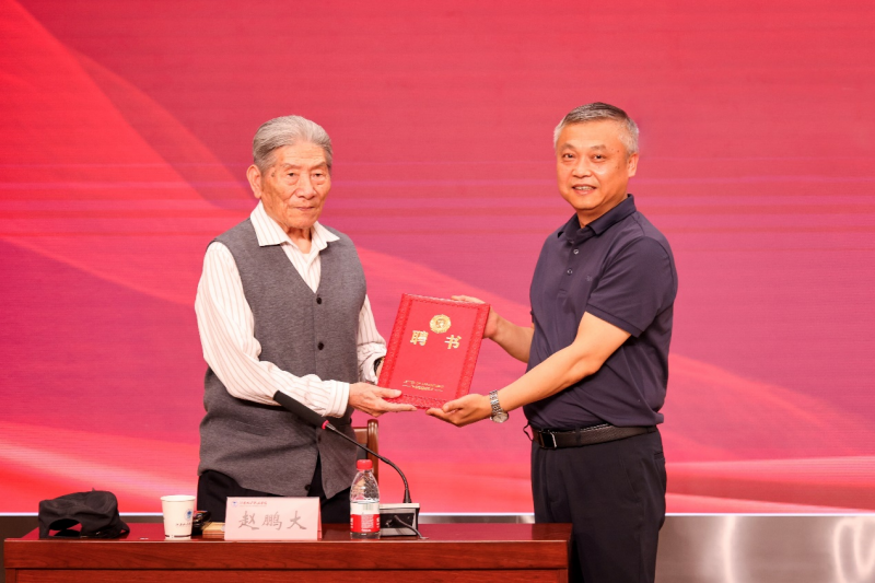 校长刘玉宾为赵鹏大院士颁发了聘书,聘任赵鹏大院士为河南地矿职业学院名誉校长。