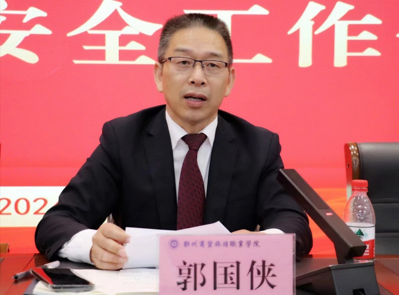 为深入学习贯彻习近平总书记关于安全生产的重要论述和重要指示批示精神,切实维护校园安全稳定,5月9日下午,郑州商贸旅游职业学院在中原校区学术报告厅召开2024年安全工作会议暨安全目标责任书签订仪式。校党委书记张睿,校长郭国侠,校党委副书记郭林山,副校长冯鑫永、康勇、王素湘,校长助理吴刚出席会议,各处室及二级学院负责人参加会议,会议由校长郭国侠主持。
