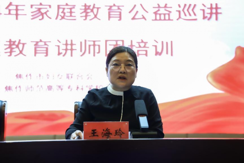 为迎接5.15国际家庭日的到来,5月12日下午,由焦作市妇女联合会和焦作师范高等专科学校主办,焦作市家庭教育研究与指导中心承办的焦作市2024年家庭教育公益巡讲暨家庭教育讲师团培训活动在学校学术报告厅举行。焦作市妇联党组书记、主席商玉文,焦作市妇联副主席王海玲,校党委委员、副校长、焦作市家庭教育研究与指导中心主任高闰青出席培训会议。各县市区妇联,焦作市家庭教育讲师团全体成员参加了培训。培训会议由王海玲主持。