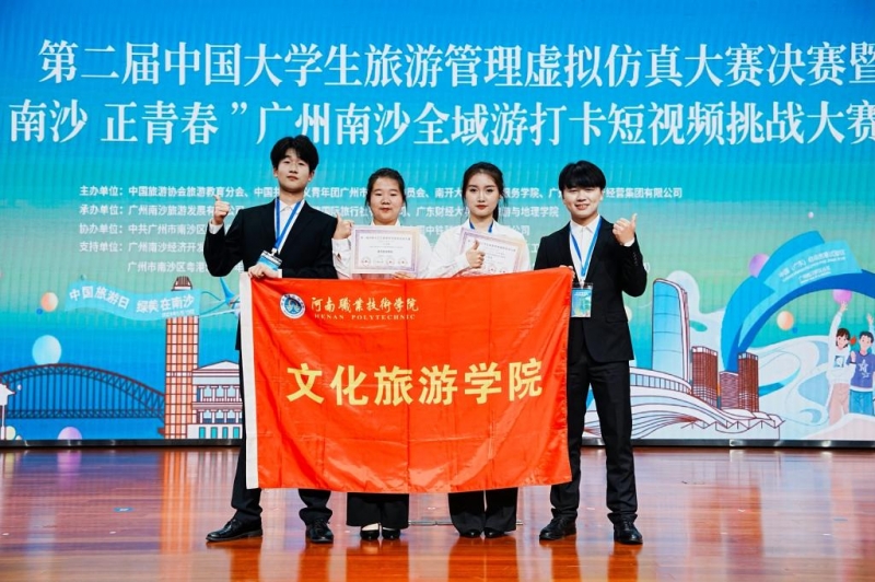 5月15日至19日,第二届中国大学生旅游管理虚拟仿真大赛决赛在广东举行。经激烈角逐,学校文化旅游学院李金明、郭腾达、刘雯迪和晁晨晨等4位同学组成的参赛队脱颖而出,荣获大赛一等奖;赵翔获“优秀指导教师”称号。