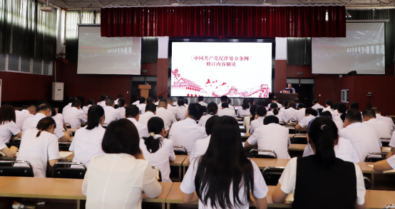 5月24日下午,郑州澍青医学高等专科学校在图书馆六楼报告厅举办党纪学习教育专题讲座,邀请市纪委监委案件审理室副主任田鹏作《新修订〈中国共产党纪律处分条例〉的理解和适用》专题报告。学校全体在校校领导、党委委员、纪委委员、党总支(直属党支部)全体委员、党支部书记、副处级以上党员领导干部参加了本次会议,讲座由纪委书记、副校长潘守政主持。