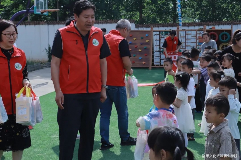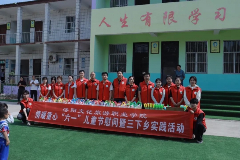 5月28日上午,洛阳文化旅游职业学院副校长聂京涛、公共基础教学部主任牛省伟、教育学院书记王俊侠、学生中心副主任、校团委书记冯校通、校团委副书记田永等一行16人到洛宁县河底镇城村村幼儿园开展“六一”儿童节慰问活动,同时进行了“三下乡”社会实践活动。本次活动由党群工作部和学生中心联合举办。