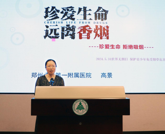 本次讲座特邀郑州大学第一附属医院呼吸危重症医学科副主任医师高景主讲。高景向师生们普及烟草相关知识,讲解烟草及电子烟对身心健康的危害,为师生们介绍控烟禁烟法律知识,引导大家远离烟草,养成科学、健康的学习生活习惯。高主任紧紧围绕“珍爱生命 拒绝香烟”这一主题,强调吸烟对呼吸道免疫功能、肺部结构和肺功能均会产生影响,引起多种慢性呼吸系统疾病。充分证据表明,吸烟可以导致慢性阻塞性肺疾病、呼吸系统感染、肺结核、多种间质性肺疾病,且吸烟量越大、吸烟年限越长,疾病的发病风险越高。她还告诫大家在日常生活中不仅要自身远离烟草,同时也要劝告身边的人少吸烟、不吸烟。强调吸烟等于慢性自杀的说法,并非危言耸听,吸烟不仅危害本人健康,而且还造成别人被动吸烟。被动吸烟同样会使人体质下降,健康受损,产生疾病。