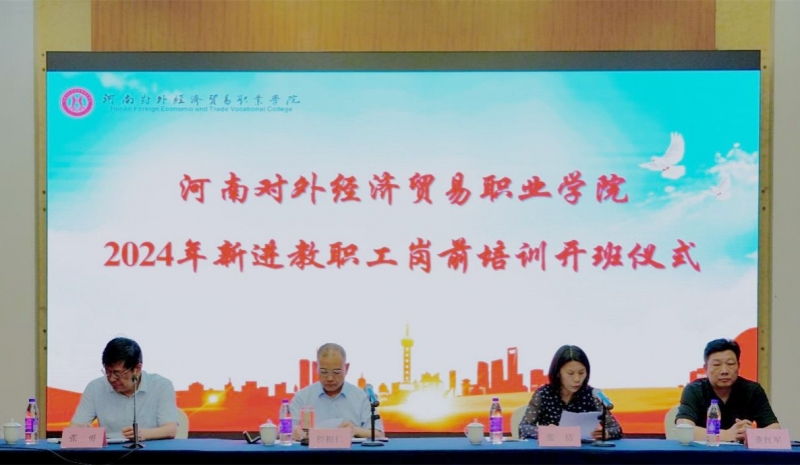 5月29日上午,河南对外经济贸易职业学院新进教职工岗前培训开班仪式在郑州举行。党委书记程相仁、院长张倩、副院长张勇、纪委书记董红军出席仪式,仪式由张倩主持。