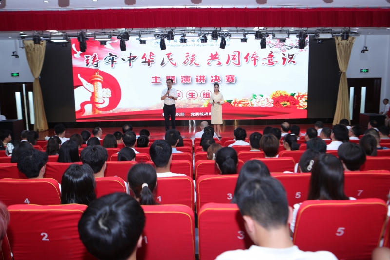 近日,平顶山工业职业技术学院“铸牢中华民族共同体意识 ”主题演讲比赛学生组决赛举行。学校党委书记毕晓阳,校党委常务副书记、工会主席刘翱翔,纪委书记李清锋,副校长张立方、刘怀珍、杨立峰等校领导出席活动,各相关职能部门负责人、学工战线全体人员及各院部学生代表500余人共同观看比赛。