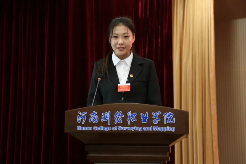 河南测绘职业学院第四次学生代表大会闭幕式上,校团委王晓宇老师庄重宣布了此次大会的选举结果。大会选举产生了河南测绘职业学院第四届学生会学生委员会和第四届学生会主席团成员。