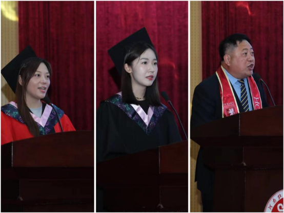 钟一平同学作为优秀毕业生代表发言。她表示将秉承“尚严崇实 善知敏行”的校训精神,以信仰之光照亮前行之路,让青春在全面建设社会主义现代化国家的火热实践中绽放出绚丽之花。