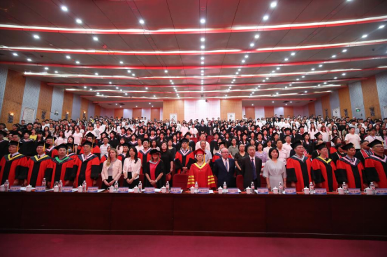 黄良杰在主持典礼仪式时叮嘱全体毕业生,要牢记母校嘱托,在新征程上以更加宽广的胸怀、更加革新的思维和更加进取的姿态,努力发挥自己的专业技能,在青春的跑道上奋勇争先,不负韶华,不负时代,勇攀高峰!