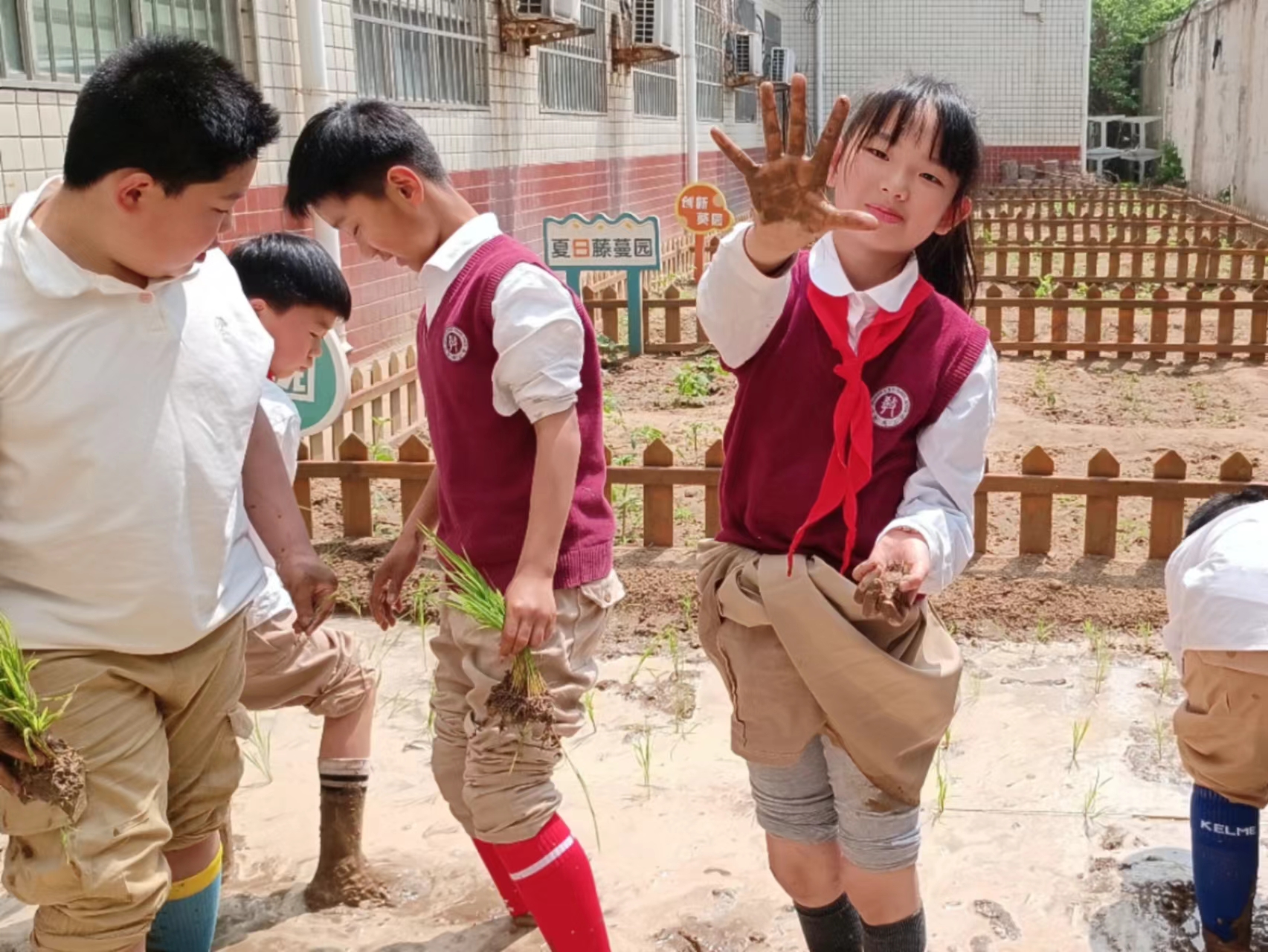 “作物生长过程中怎么控制杂草的生长?”“七彩水稻的生长要经历哪些阶段?”“阳光房的水培种植有哪些注意事项?”近日,在郑州市管城回族区创新街小学(以下简称“创新街小学”)的种植基地里,学生对农作物种植与养护的热烈讨论此起彼伏,知识面之宽让人赞叹,而这都得益于该校构建的智慧劳动课程体系。