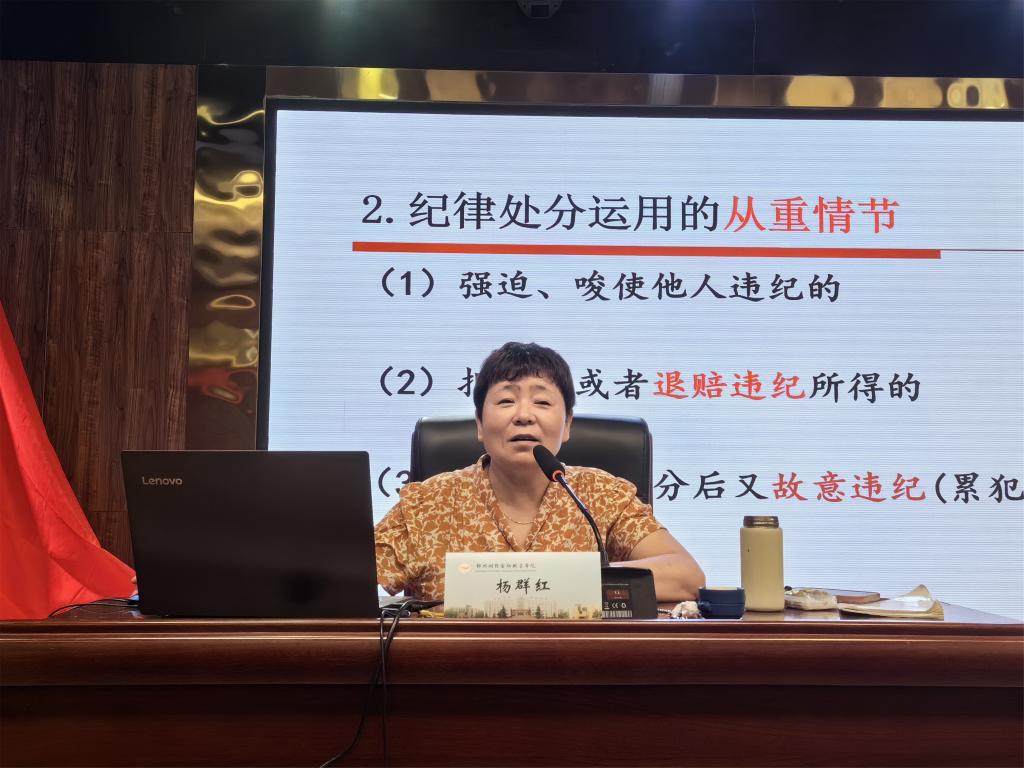 开班仪式结束后,省委党校杨群红教授对《中国共产党纪律处分条例》进行了学习辅导。杨教授围绕《条例》新修订的内容、遵循的主要原则、“六大纪律”的情形及处分等问题进行了深入浅出的讲解。