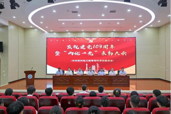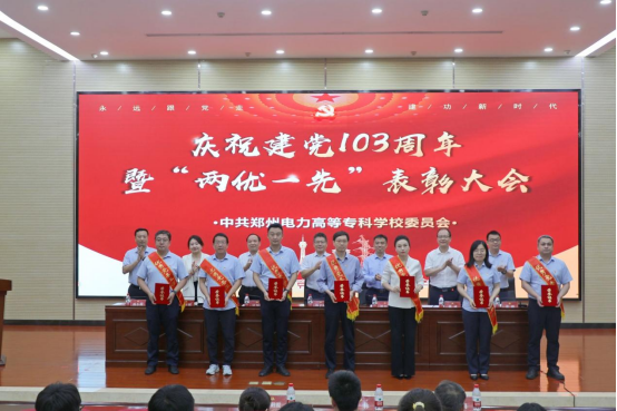 7月1日,郑州电力高等专科学校举行庆祝建党103周年暨“两优一先”表彰大会,郑州电力高等专科学校全体领导班子成员,全体党员、新党员、入党积极分子代表参加会议。会议对三年来取得优异成绩的先进基层党组织、优秀共产党员和优秀党务工作者进行了表彰。
