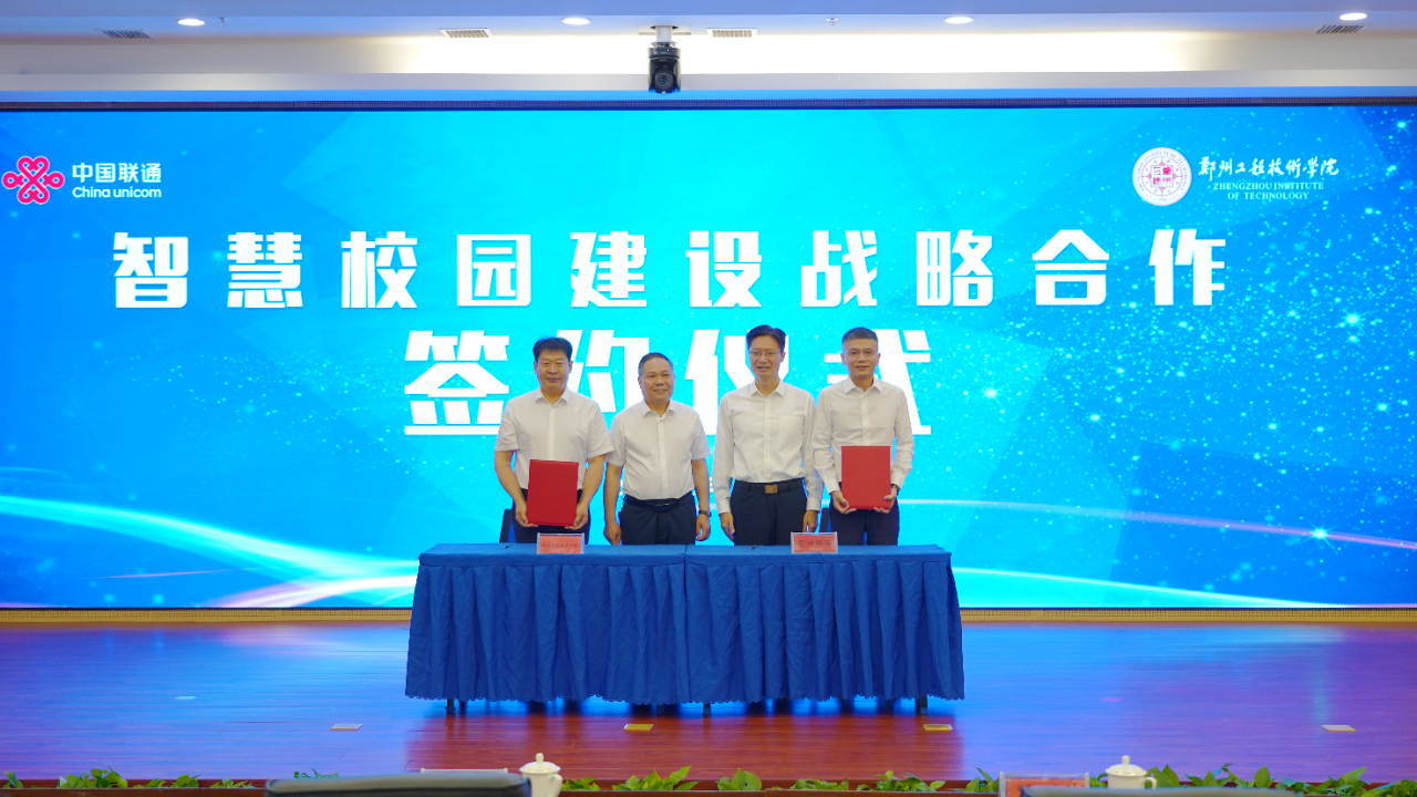 7月4日上午,郑州工程技术学院与中国联合网络通信有限公司郑州分公司(以下简称郑州联通)战略合作签约仪式在郑州联通顺利举行。郑州工程技术学院党委书记甘勇、副校长杨庆年,郑州联通党委书记、总经理瞿群伟,党委委员、副总经理吴庆虎出席签约仪式。