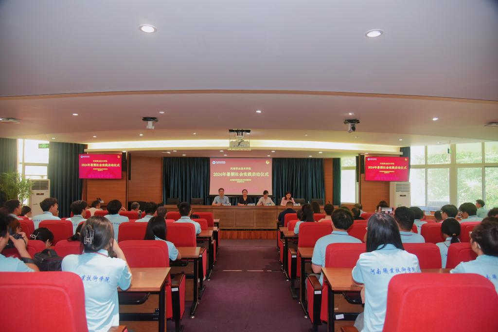 7月4日上午,河南职业技术学院2024年暑期“三下乡”社会实践启动暨实践团队授旗仪式在行政楼238会议室举行。校党委副书记田华出席仪式并为13支暑期社会实践团队授旗。党委宣传部、党委学工部、校团委等部门负责同志,各二级学院党总支书记、副书记、团总支书记及140余名社会实践团队师生代表参加仪式。