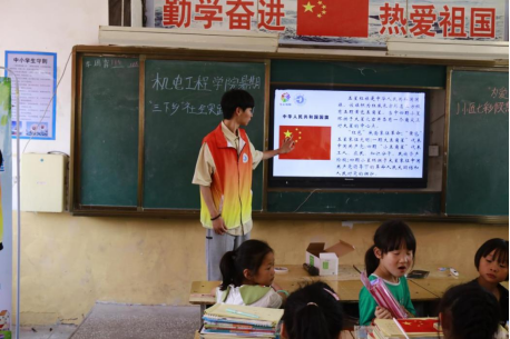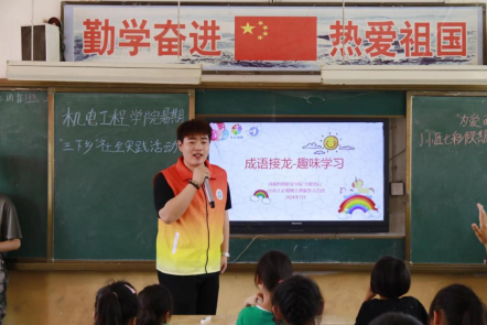 为学习贯彻习近平新时代中国特色社会主义思想和党的二十大精神,深入落实“时代新人铸魂工程”,积极倡导普及科学文化知识,推动乡村文化基层教育事业不断向前发展,引导和帮助广大青年学生在与实践相结合的“大思政课”中提升自我。7月6日,河南机电职业学院“青春建功新时代,七彩童真心向党”J小匠暑期社会实践团走进商水县化河乡开展暑期社会实践活动,在广阔的基层天地中磨练自己,把课堂学习和社会实践紧密结合起来,引领青年立志做有理想、敢担当、能吃苦、肯奋斗的新时代好青年。