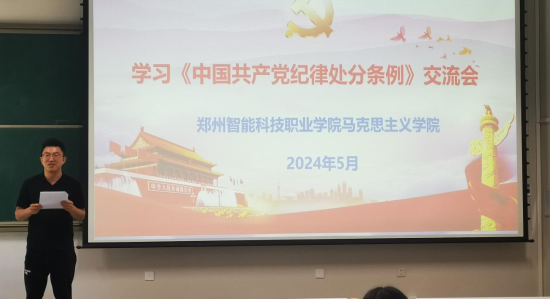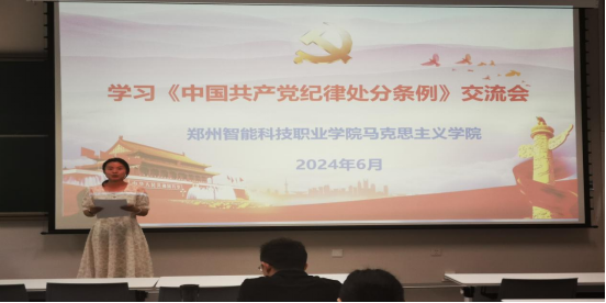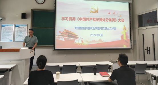 为深入开展党纪学习教育,强化党员廉洁自律意识,教育引导教师党员增强“四个意识”,坚定“四个自信”,拥护“两个确立”,做到“两个维护”,始终做到忠诚、干净、担当,郑州智能科技职业学院马克思主义学院党支部按照学校党委的要求和部署,根据实际情况,扎实开展学习贯彻《中国共产党纪律处分条例》系列教育活动。