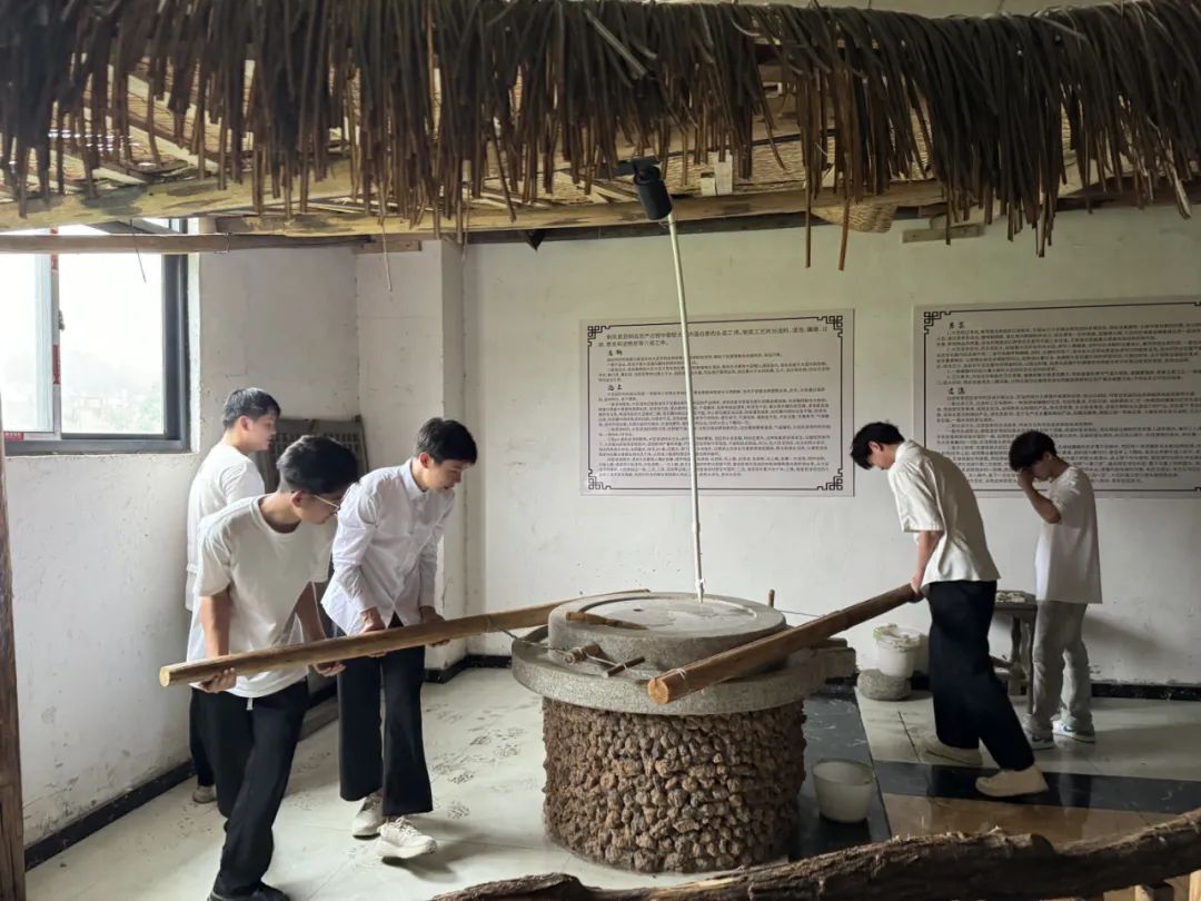 活动首站,学生们踏入了历史悠久的骆驼崖农耕文化体验区。这里,每一寸土地都镌刻着岁月的痕迹,传统农具、耕作方式仿佛让人瞬间穿越回那个自给自足的农耕时代。学生们亲手操作古法农具,体验播种、收割的乐趣,深刻理解了“粒粒皆辛苦”的含义,更对古代劳动人民的智慧与勤劳表示由衷的敬佩。此外,在非遗传承人的指导下,同学们亲手参与了芝麻糖的制作过程,从麦芽的筛选、炒制、磨粉,到糖稀的熬制和芝麻糖的成型,每一个步骤都让他们感受到了传统手艺的魅力和智慧。