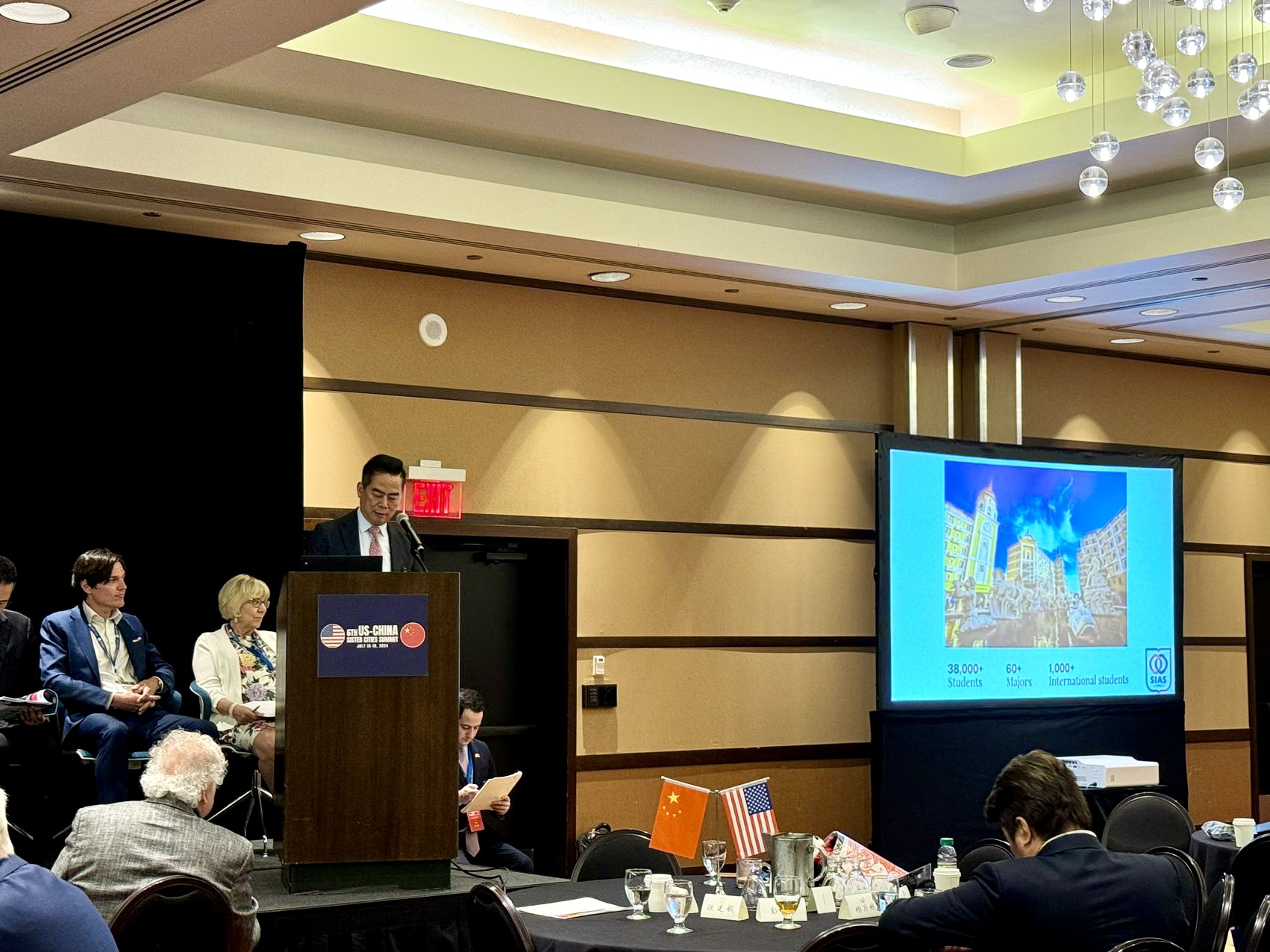 陈肖纯在分议题环节,代表郑州西亚斯学院作了题为“加强中美友好合作,促进文化交流”的主题分享,向与会者介绍了学校的国际化办学特色,回顾了郑州西亚斯学院自1998年建校以来,在中美两国政府的有力支持下,成功促成并接待了众多中美政府、教育界以及青少年团体的互访交流,为增进国际友谊和合作做出的积极努力。陈肖纯博士特别分享了郑州西亚斯学院在国际合作交流尤其是中美教育交流方面的宝贵经验与成果,并强调了中美双方在教育、文化和科技领域合作的巨大潜力。他呼吁双方加强交流,共同推动友好关系的发展。