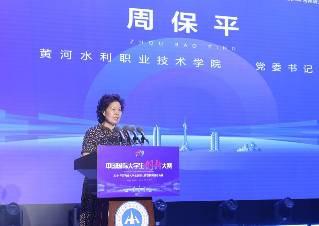 周保平致欢迎辞,简要介绍了学校悠久的办学历史、鲜明的办学特色、显著的办学成效及创新创业工作的突出成绩。她指出,学校高度重视创新创业工作,深入贯彻新发展理念,主动融入产业升级和国家创新驱动发展战略,不断加强创新创业工作顶层设计。学校以培养具有社会责任感、创新精神、创业意识、创造能力的高素质创新创业人才为总体目标,统筹校内外创新创业教育资源,优化“双平台、三生态”为核心的人才协同培养体系,构建区域性创新创业生态系统,服务区域经济社会创新发展、高质量发展。充分发挥各级各类创新赛事的引领和承载作用,坚持产教融合、专创融合,不断完善创新创业服务功能。近年来,在中国国际大学生创新大赛中,共获得国赛1金、4 银、11 铜,省赛55金、71银、78铜的佳绩。她表示,在承办过程中,学校将努力为各参赛队的师生做好全方位服务工作,并严格按照竞赛要求,公开、公平、公正地做好赛事组织工作。希望以此次大赛为契机,在互学互鉴中汲取智慧,在取长补短中合作共赢。