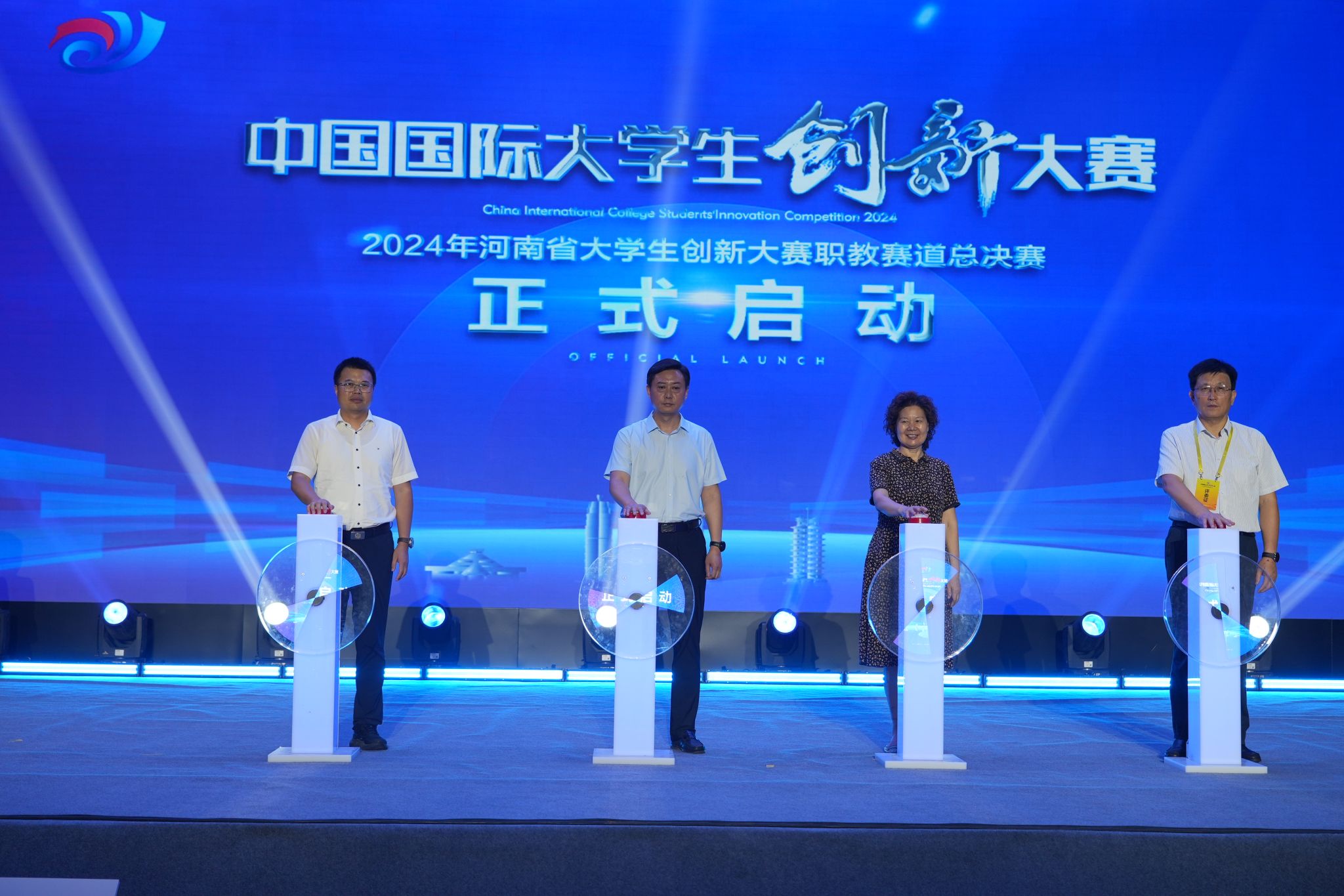 与会领导共同启动2024年河南省大学生创新大赛暨中国国际大学生创新大赛河南赛区选拔赛职教赛道总决赛。