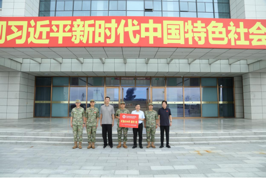 在中国人民解放军建军97周年之际,为发扬学校“双拥”工作优良传统,巩固和深化军校共建合作,7月29日,鹤壁职业技术学院党委书记蔡太生、党委副书记赵勇带队赴中国人民解放军32145部队开展走访慰问活动,向部队官兵送上慰问品和真挚祝福。32145部队副旅长张小伟、副政治委员朱刚、政治工作部主任姬少辉、保障部部长周智谋等人参加活动。