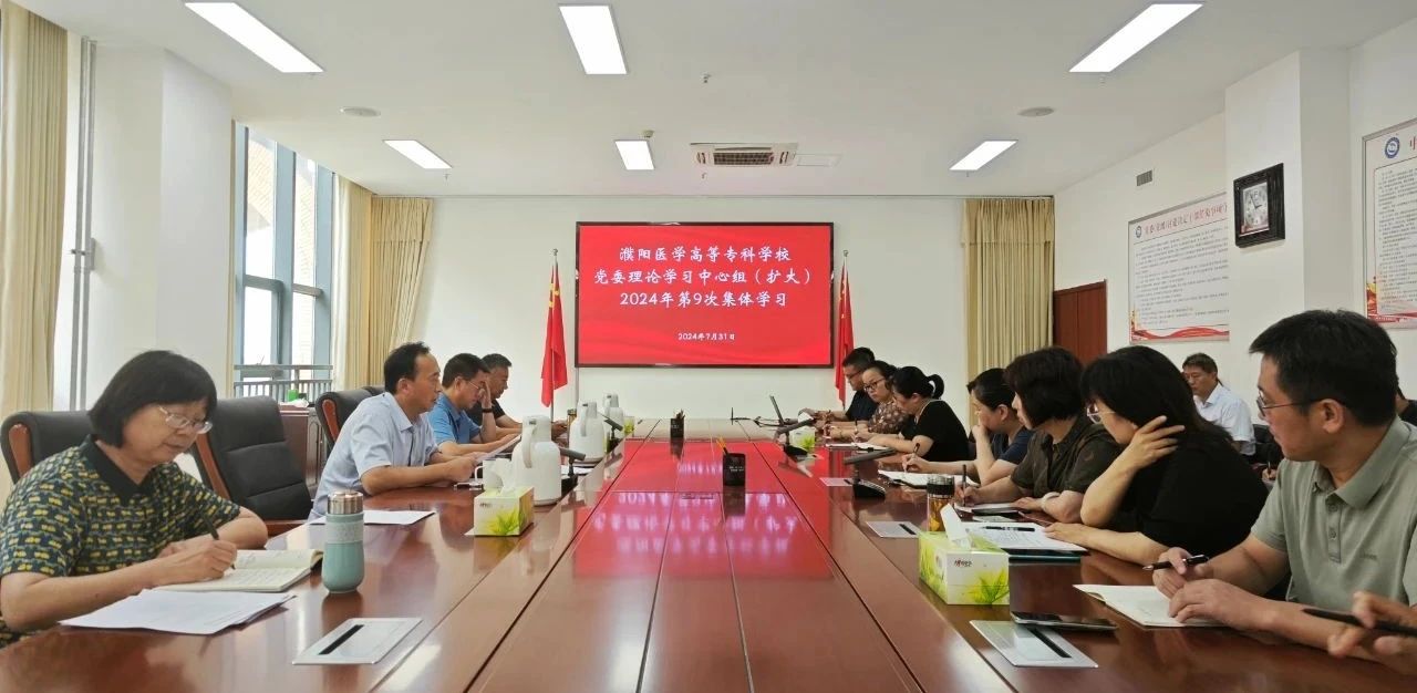 7月31日,濮阳医学高等专科学校召开党委理论学习中心组(扩大)2024年第9次集体学习研讨。全体校领导班子成员结合个人思想、工作实际,谈参加党纪学习教育特别是学习《条例》的认识感悟和收获体会,对照《条例》检视在学纪知纪明纪守纪方面的不足,明确努力方向。党委书记李铁军主持并讲话。各位校领导、各院部和相关部门负责人参加会议。研讨前,共同学习了习近平总书记在中央政治局第十五次集体学习时的重要讲话精神。随后,党委副书记、校长路红显,副校长何美玲、谢法纲、袁俊斋作了交流发言。