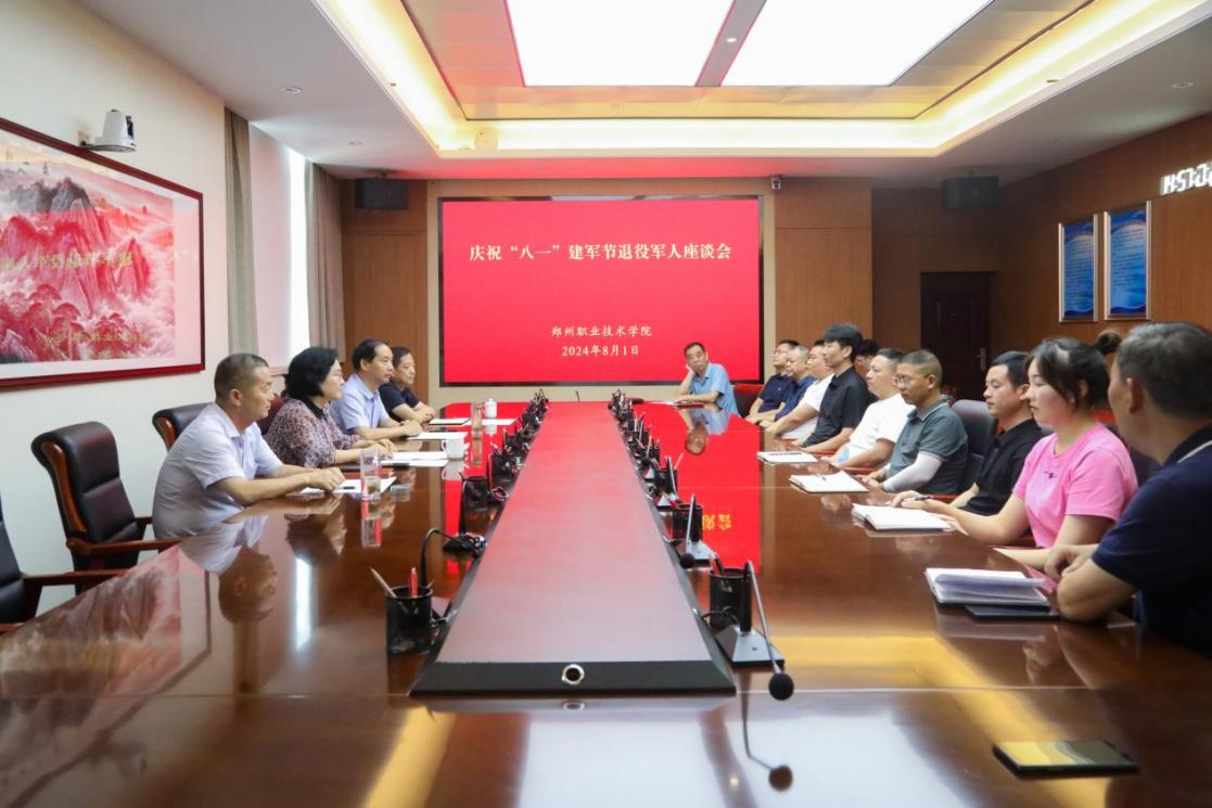 8月1日,为庆祝中国人民解放军建军97周年,扎实做好双拥工作,郑州职业技术学院在信息图文中心召开庆祝“八一”建军节退役军人座谈会。党委书记吕村、党委副书记肖世才等校领导及相关部门负责人,与学校军转干部、退役军人代表齐聚一堂,忆峥嵘岁月,展望美好未来。座谈会由党委副书记肖世才主持。