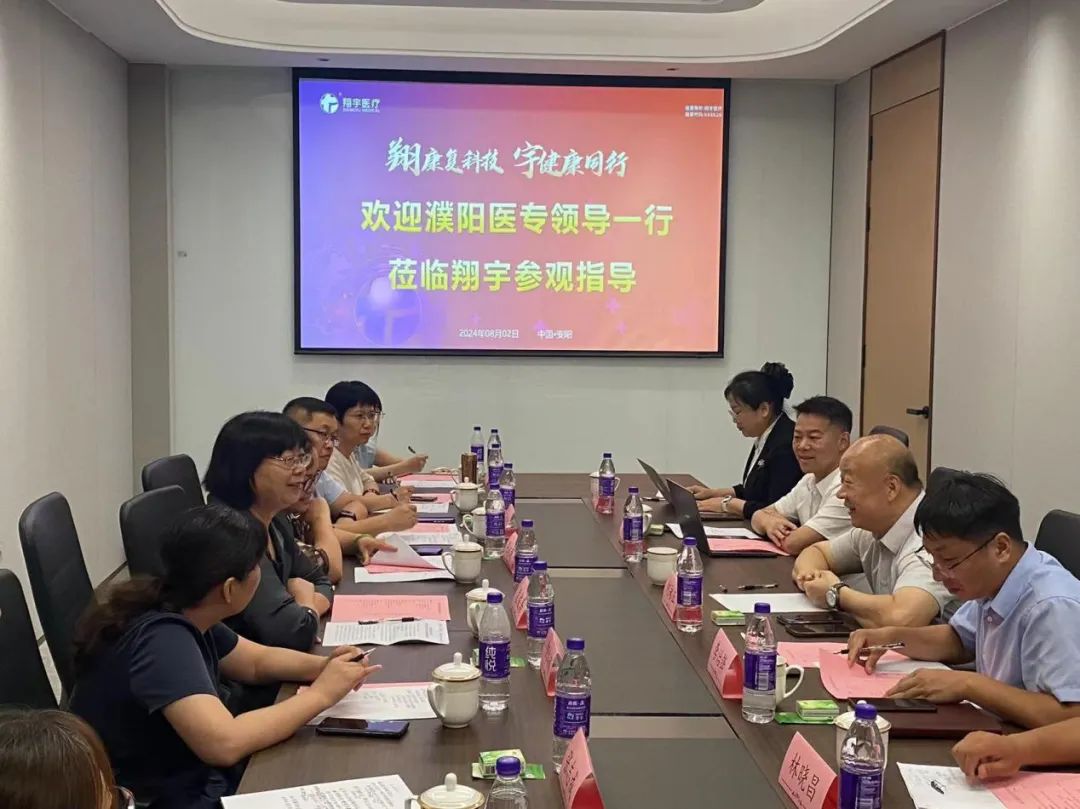 濮阳医专副校长袁俊斋、翔宇医疗董事长何永正、监事会主席李治锋出席了本次洽谈。校企双方相关负责人参加。
