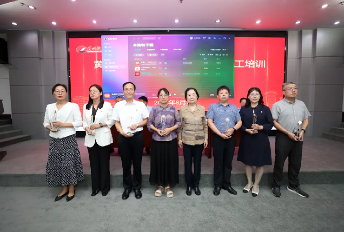 胡大白首先为学校“黄河勋章奖”获得者颁发了奖杯。