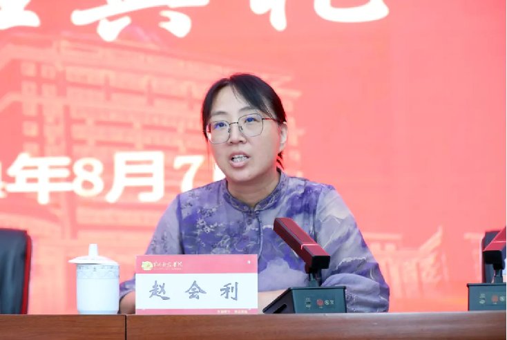 赵会利讲话。她从“认识职业”和“认识学校”两个方面与大家进行了交流。她说,今年是黄河科技学院成立40周年,黄河科技学院创办了许多中国民办教育历史上的第一和唯一。正因为一批批黄科院人秉持“开拓、拼搏、实干、奉献”的黄科大精神,才成就了如今黄科院的辉煌。所以,年富力强、充满活力、具备扎实专业能力的你们是学校宝贵的财富,是学校的未来和希望,是学校事业发展的生力军。学校正奋斗在建设一流应用科技大学的征程上,正在实现“申硕”目标和迎接教育部本科教学工作审核评估的关键时刻,你们的加盟正逢其时,有你们的倾情投入和共同奋斗,必将为黄河科技学院的建设和发展增添新鲜血液,增强前进动力。