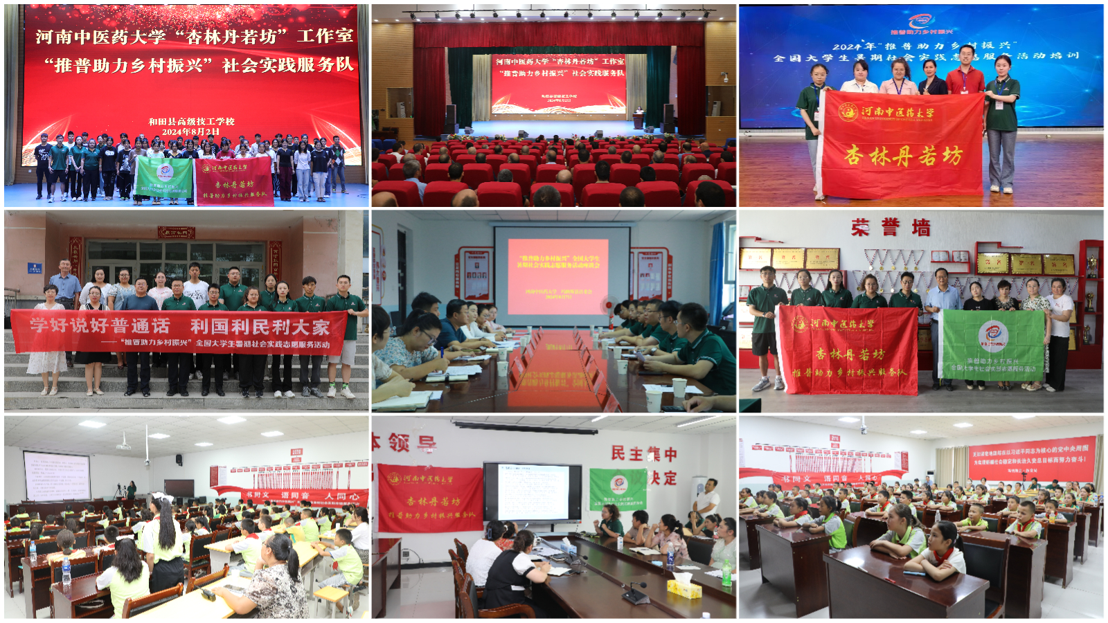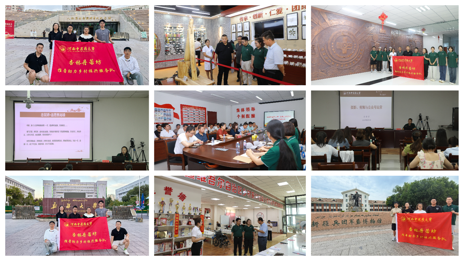 按照教育部语用司《关于开展2024年“推普助力乡村振兴”全国大学生暑期社会实践志愿服务活动的通知》有关要求,河南中医药大学“杏林丹若坊”工作室实践团队于2024年7月31日至8月10日期间赴新疆和田地区和田市、和田县、洛浦县及昌吉州玛纳斯县开展专项社会实践活动。实践以推广国家通用语言文字构筑沟通桥梁、以宣传弘扬中医药文化开展深层次交往交流,助力乡村振兴战略实施,服务铸牢中华民族共同体意识,推动当地语言文字工作、医疗健康事业及经济社会发展。