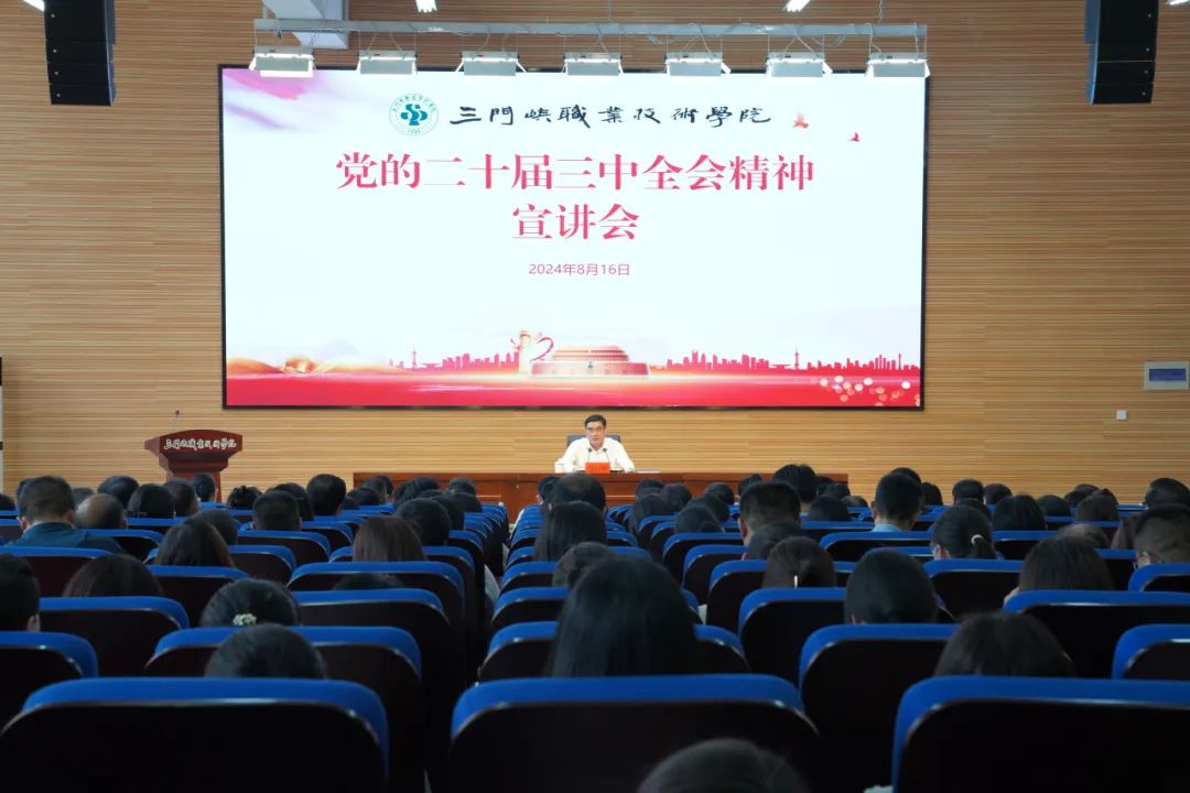 下一步,学院将在党的二十届三中全会精神指引下,按照范书记宣讲报告中提出的要求,紧紧围绕学院第三次党代会提出的目标任务,聚焦“特色鲜明、省域一流的高水平职业技术大学”建设,立足高职教育类型定位、加快推进现代职业教育体系建设这个基点,锚定冲刺国家“双高”院校和发展本科层次职业教育两大目标,不断提升办学水平和综合实力,为三门峡经济社会高质量发展贡献学院力量。