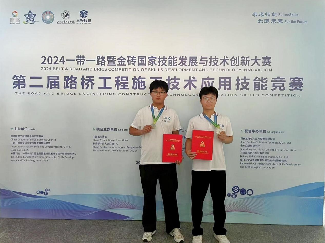 2024一带一路暨金砖国家技能发展与技术创新大赛(国赛)第二届路桥工程施工技术应用赛项决赛(高职组)于8月20日至8月22日在山东交通职业学院举行,鹤壁职业技术学院建筑设计与工程学院道路与桥梁工程技术专业学生赵总从、王宝琪组成的代表队获二等奖,学校获优秀组织奖。