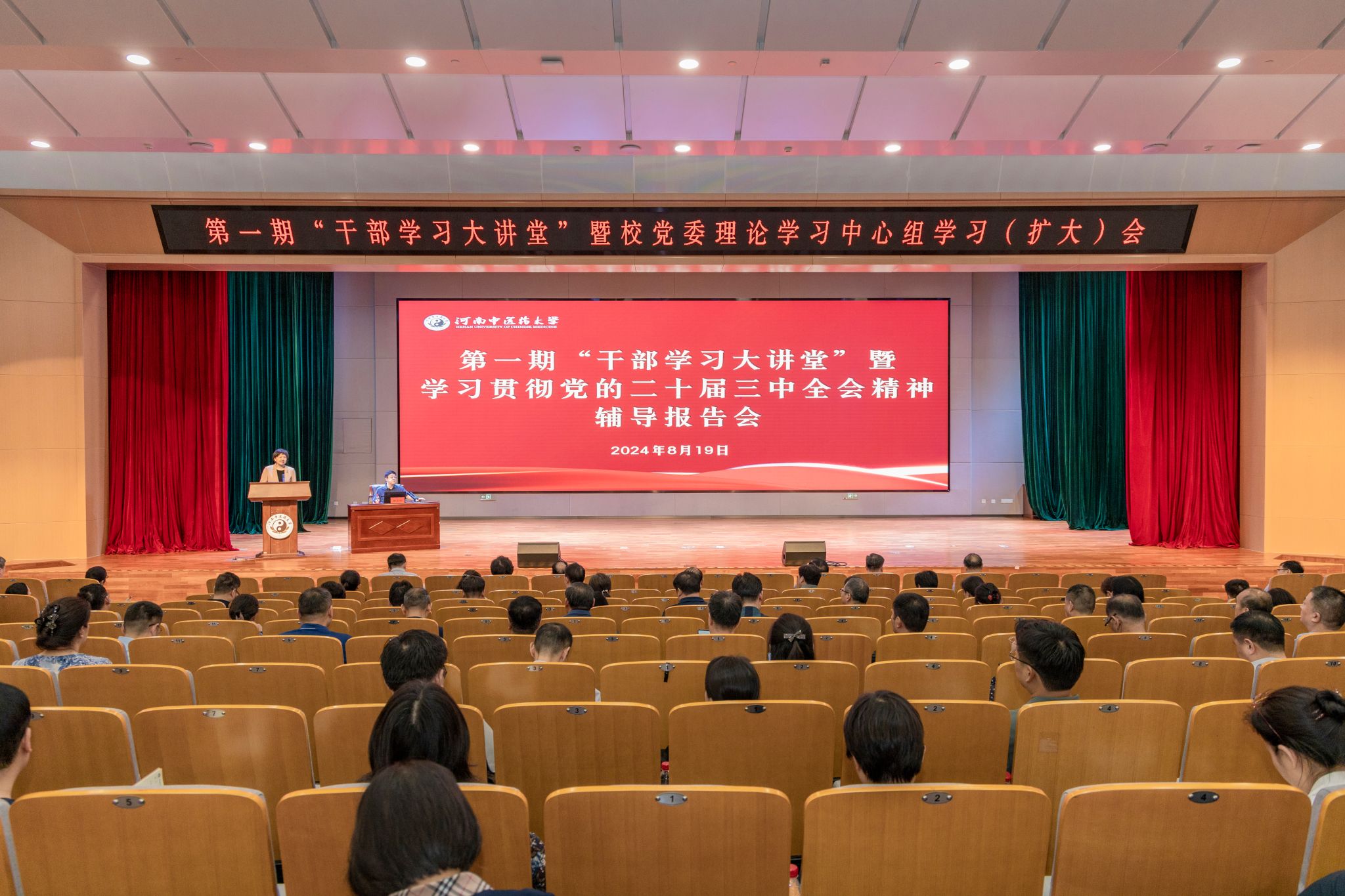 为进一步学习贯彻落实党的二十届三中全会精神,加强党的创新理论武装,全面推进深化改革,助推河南中医药大学高质量发展,8月19日至21日,河南中医药大学在俊学楼举办了第一期“干部学习大讲堂”。全体校领导、中层领导干部、处级组织员、督导员等参加培训。